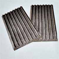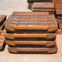 從顎式破碎機的工作原理中我們知道,在顎式破碎機工作時,動鄂和定鄂承受巨大的破碎力,容易磨損,為了保護鄂板,一般在動鄂和定鄂的表面安裝耐磨的襯板,也就是我們常說的動鄂板和定鄂板,顎式破碎機襯板的表面通常做成齒形,齒峰的角度為90°~120°,破碎大塊物料時,角度要大些;破碎小塊物料時,角度可以小些。齒距的大小取決于出料口的寬度,齒高與齒距之比可取為1/ 2~1/ 3。